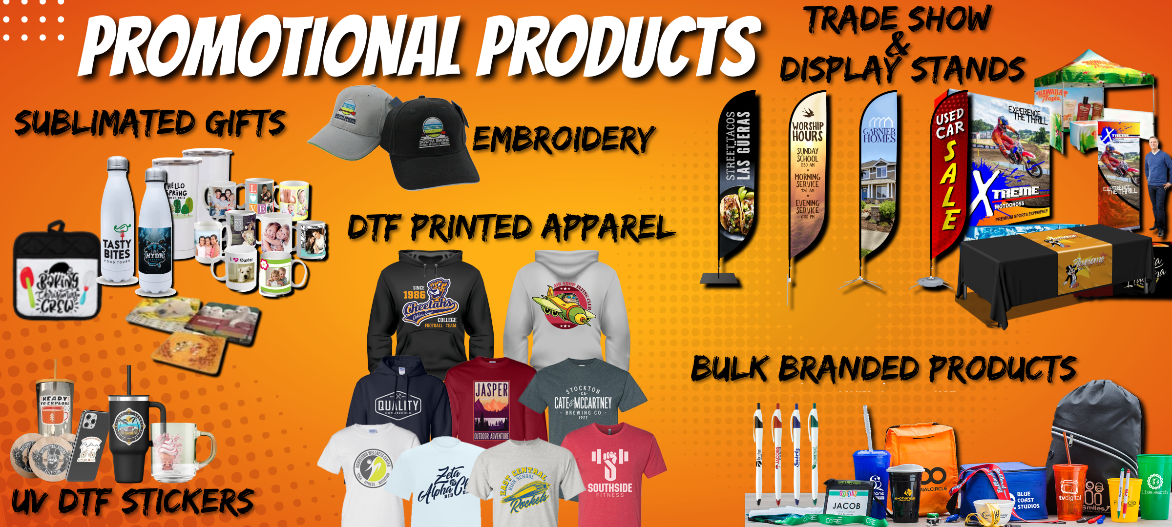 - Direct To Film (DTF) printed apparel (Shirts, Hoodies & Hats)